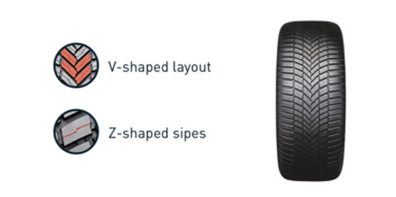 Weather Control nie są zwykłymi oponami wielosezonowymi. Ten model jest wyjątkowy, jeśli chodzi o rozwiązania wspomagające kierowcę zimą. Udoskonalona mieszanka NanoPro-Tech ™, ułożenie bieżnika w kształcie litery V i innowacyjne lamele ułatwiają hamowanie i przyspieszanie oraz zapewniają lepsze właściwości trakcyjne na śniegu.